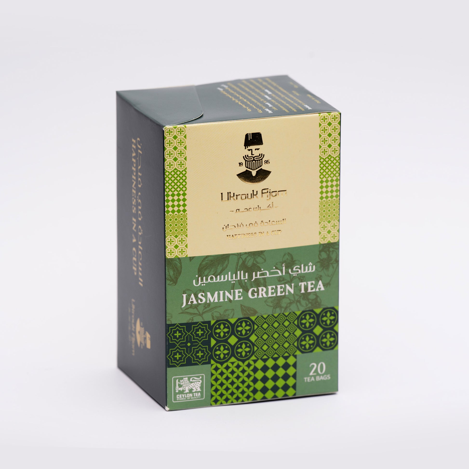 At Ukrouk Ajam, we take pride in delivering the freshest, hand-plucked Ceylon tea, celebrated for its unparalleled quality. Our jasmine green tea reflects this commitment, combining the finest green tea with the timeless allure of jasmine blossoms to bring you a truly unique experience.